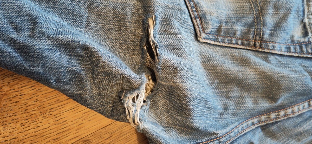 Bonjour, je cherche une personne qui accepterait de réparer un jeans (pièce intérieure à mettre sur déchirure cuisse AR, voir photos)